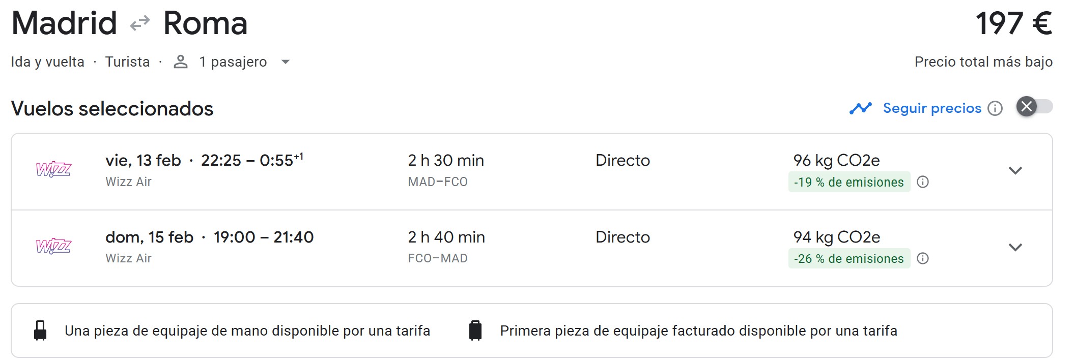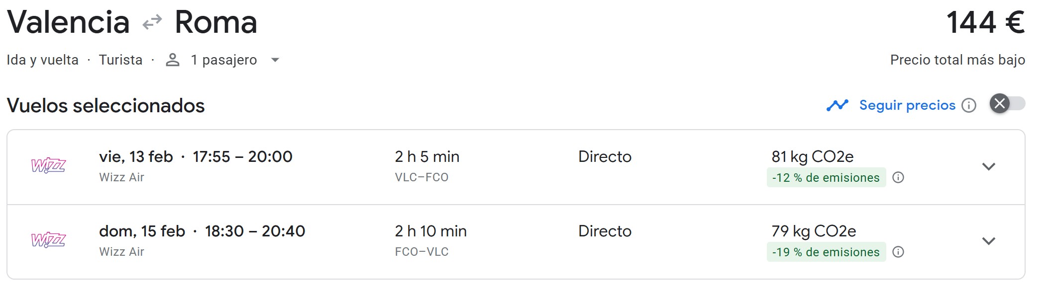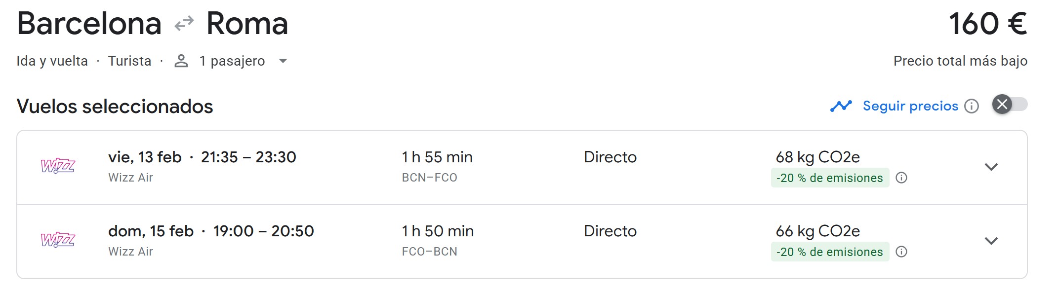 | Aeropuerto de salida | Precio |