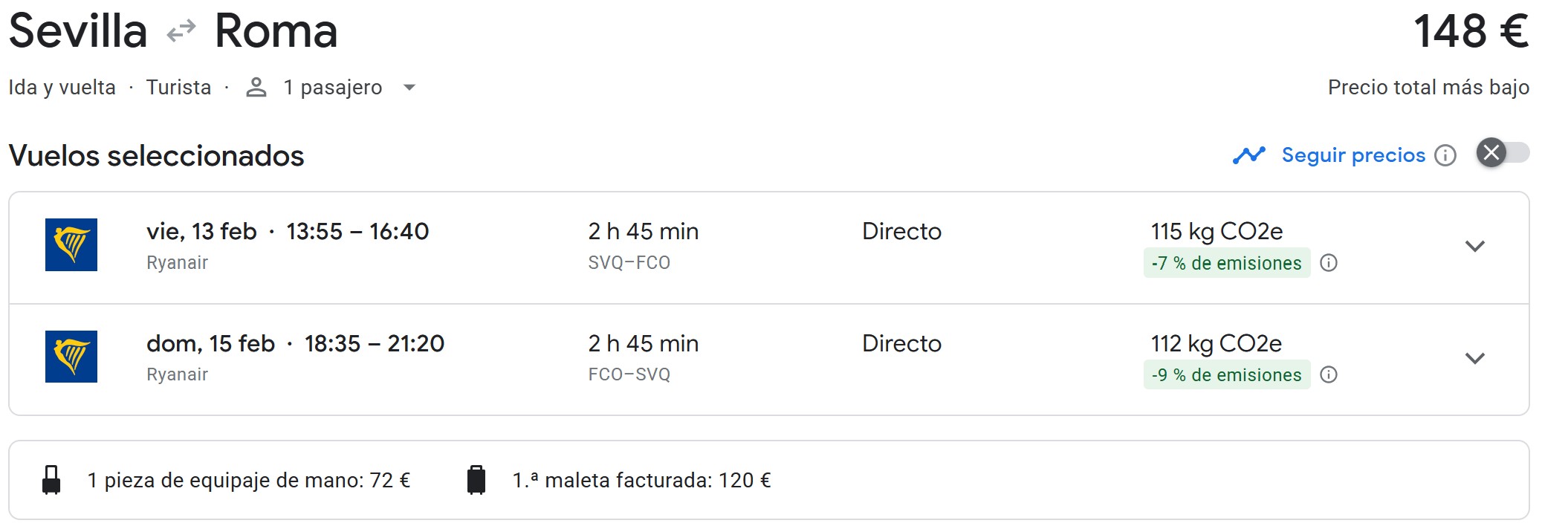 | Sevilla | 242,5 € |