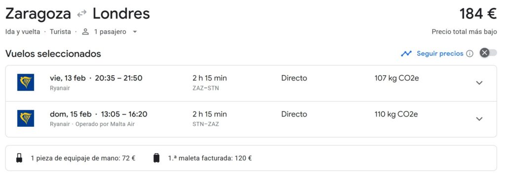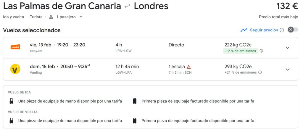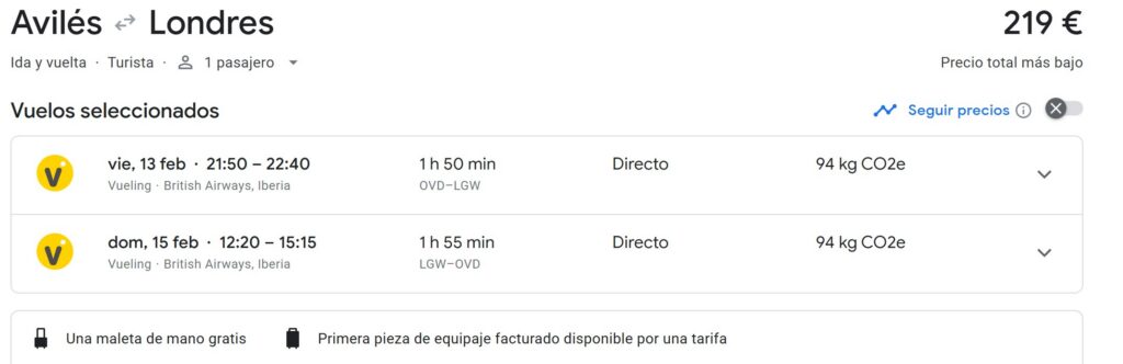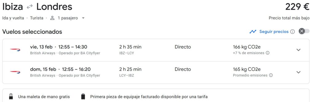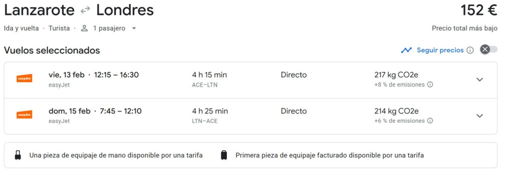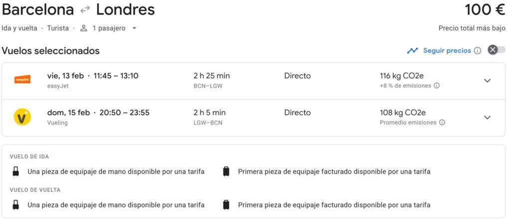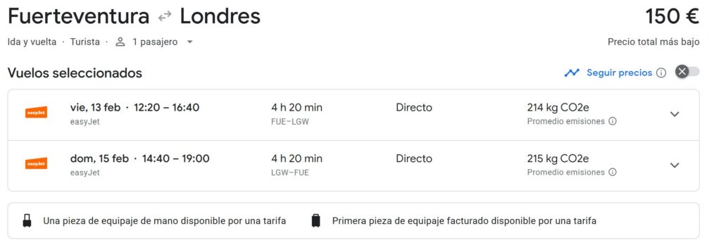 | Aeropuerto de salida | Precio |