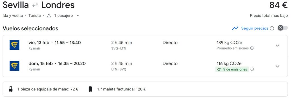 | Sevilla | 239 € |